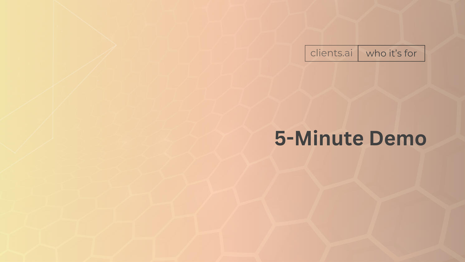 Skeptical? We insist. Watch Clients.ai in action on a live personalized demo. We’ll connect to your funnel, gather real-time intel on your visitors, and in minutes—sometimes seconds—your AI Agents produce a message so eerily accurate, your leads click “buy.” Get the rush of seeing your next sale come in while your coffee’s still hot.